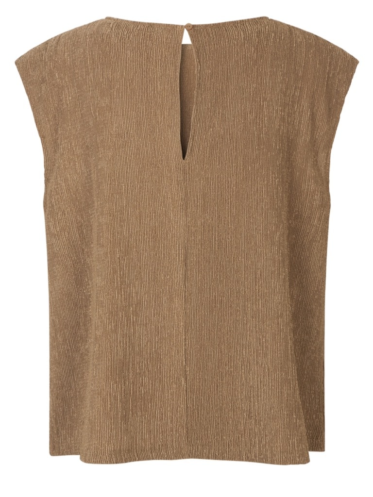 Topp i lett kreppet materiale i en uformell og kul stil. Blusen er uten armer, har rund hals og avslappet i fasongen. Fullfør antrekket med matchende bukser.