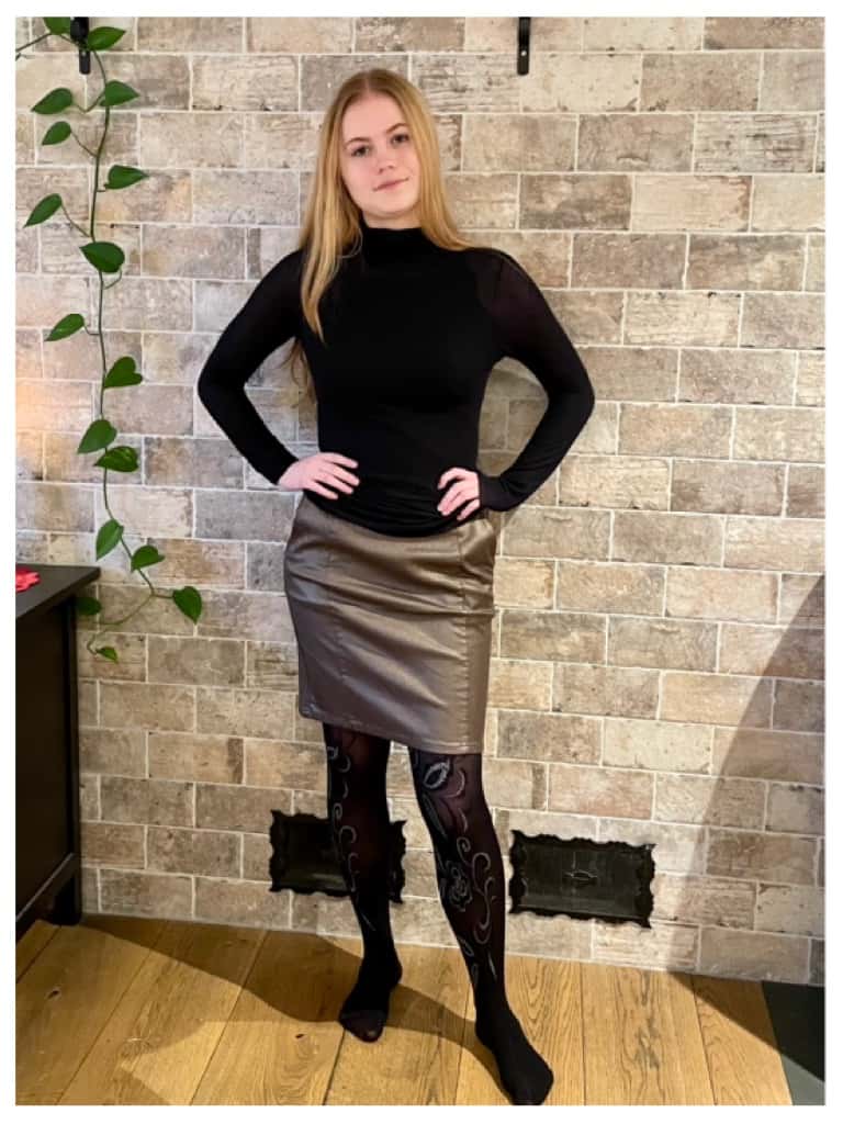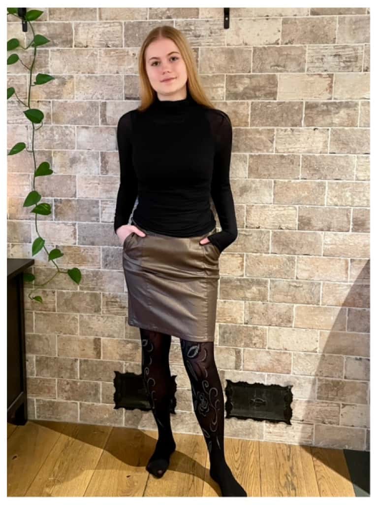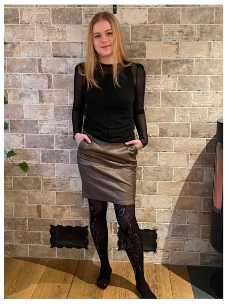Klassisk elastisk skjørt i lekker bronze farge. Style det opp til fest eller ned til jobb.