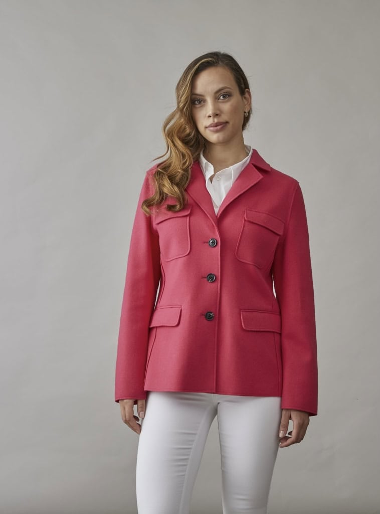 Elegant og feminin blazer i et rent design. Jakken er produsert i et mykt og behagelig materiale. Blazeren er uten for, har flere lommer og dekorative knapper.